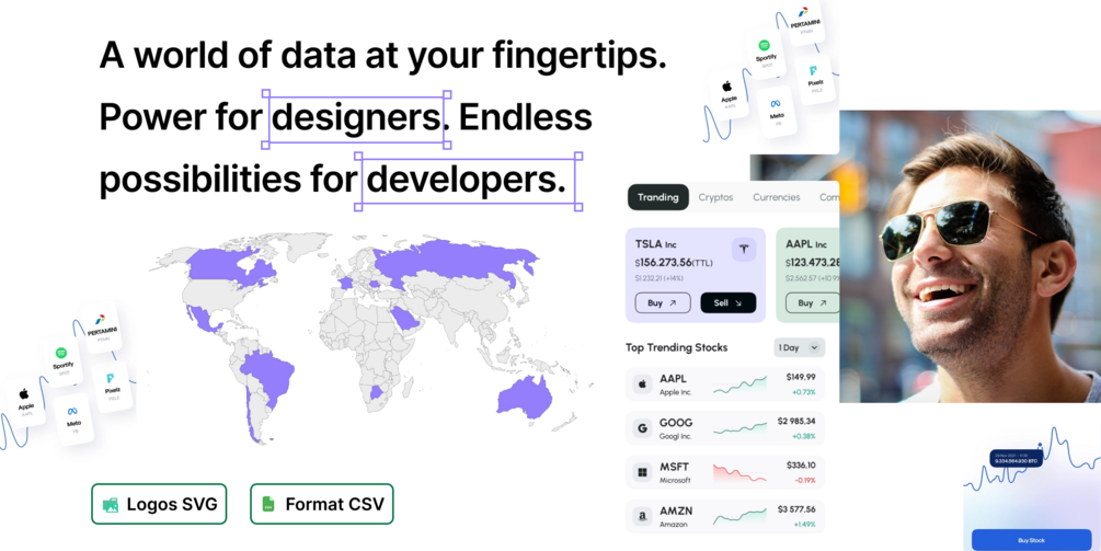 Telassia: The ultimate database for global equities. Full access to global stock market data and bonus: ETFs and flags in SVG format. Boost your fintech projects with real data and realistic design.